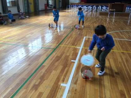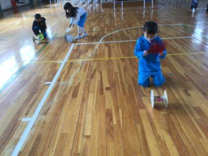みんなでコロコロレースをしたい!ということで、たいいくかんでやりました。