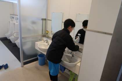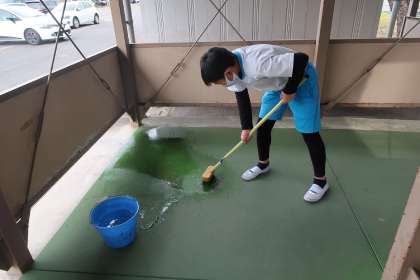 3組です。理科室や渡り廊下も掃除しました。