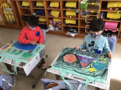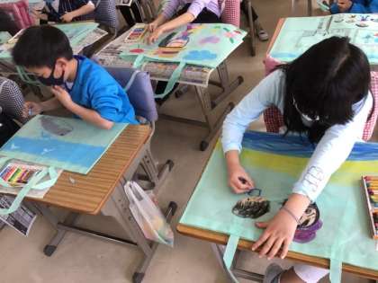 手づくりのバックに作品を入れて持ち帰るのがたのしみですね。