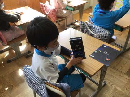 りぼんしばり、出来ました。「みてみて!」