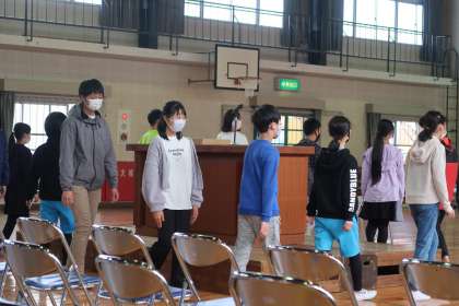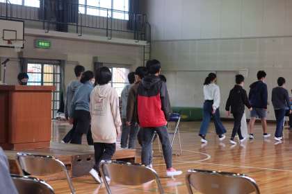 退場の練習です。保護者席の間を歩いていきます。