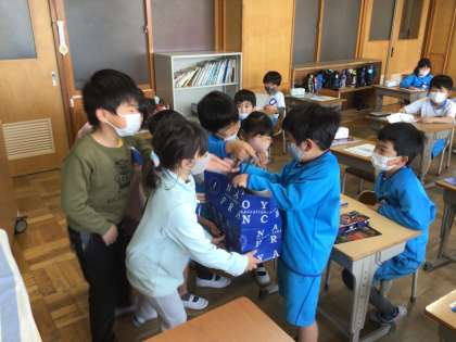 「いつまでも、お友だちだよ!」と、プレゼントです。みんなと5時間過ごす、最後の日です。