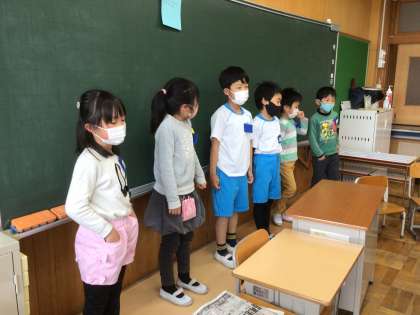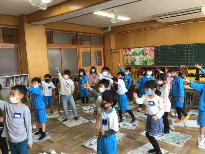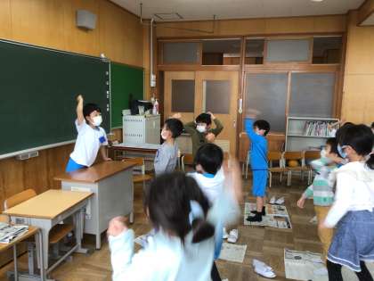 「新聞じゃんけん」をしました。説明を聞いて、さあスタートです!