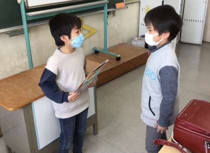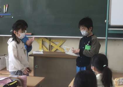 クラスのみんなで書いた手紙を渡しました。