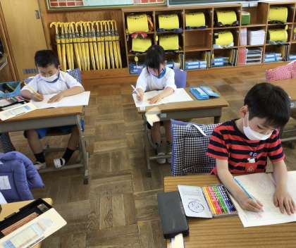 正しくえんぴつを持って ていねいに書いています。 がんばってるね。