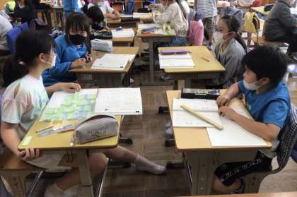 今日は、「グループにまとめて整理しよう」を学習しました。4年生の1年間でがんばりたいことを付箋に書いて、画用紙に貼り、グループにまとめて見出しを付けました。