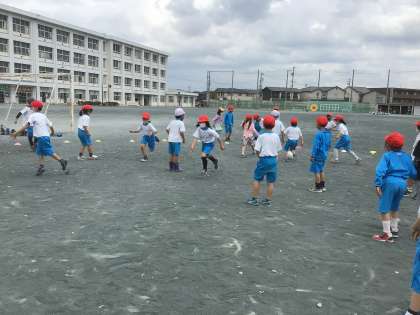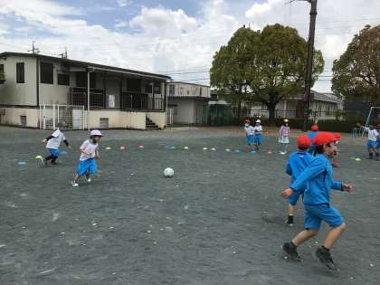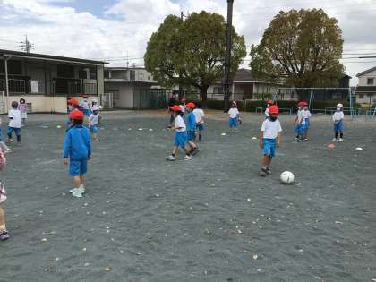 ボールけりで、当てっこゲームしました。大盛り上がりでした。
