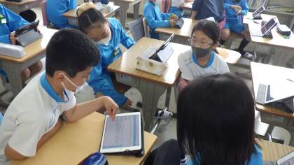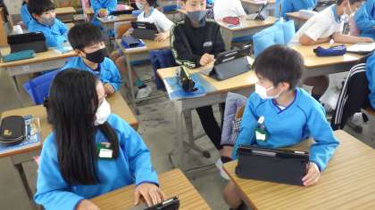 iPadを用いた算数の授業を行いました。一人一人が考えたことを画面上で共有し、意見を交わし合うことで、より深い学びが生まれるように工夫をしています。子どもたちは活発に意見交換をしていました。