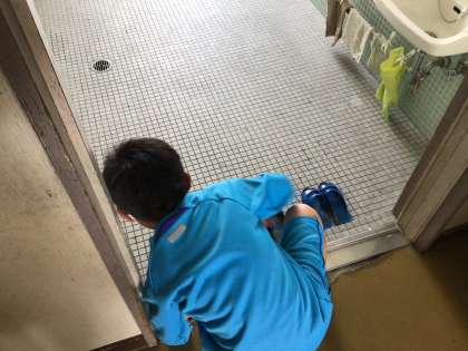 トイレのスリッパを手でそろえています。