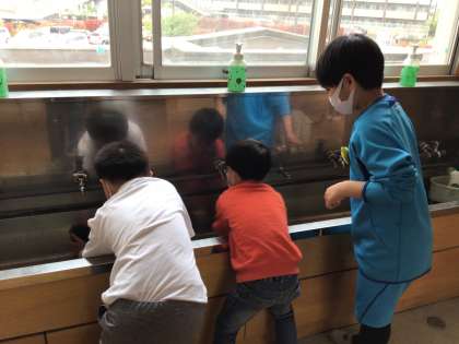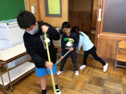 今日から、1年生のために清掃ボランティアを始めました。掃除の仕方をレクチャーしていきます。