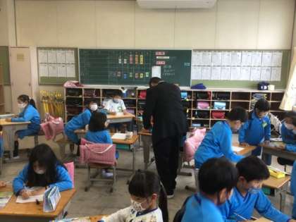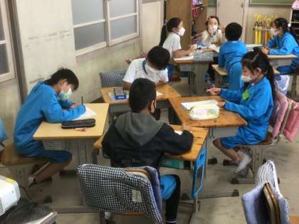 外国語担当の先生、ALTの先生との初めての授業です。ALTの先生のことについてみんなで考えて当てるクイズをしました。