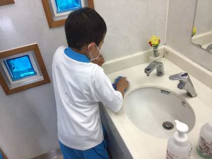 掃除2日目 トイレ掃除もがんばっています。