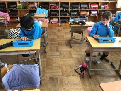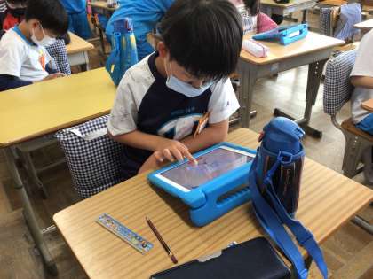 今日は、漢字スキルのアプリを学習用タブレットにインストールしました。その使い方の練習もしました。