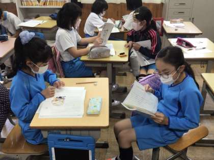 楽器の気持ちと様子をグループで話し合いをした後に、音読の練習をしました。