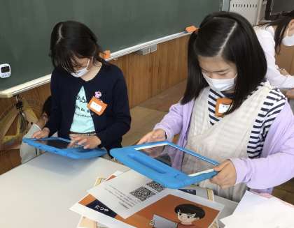 今年度から、昼の校内放送のリクエストは、学習用タブレットでQRコードを読み込んで行います。