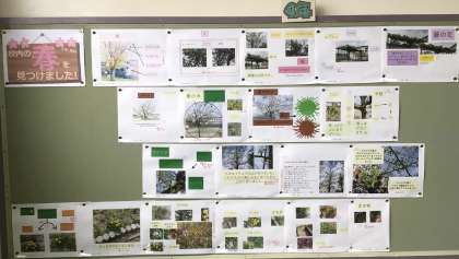 3組、4組の作品です。中央階段の2階から3階の途中にあります。