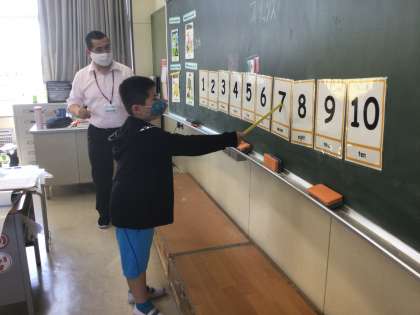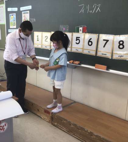 ALTのフィリックス先生と数字や色を英語で言ったり歌ったりしました。