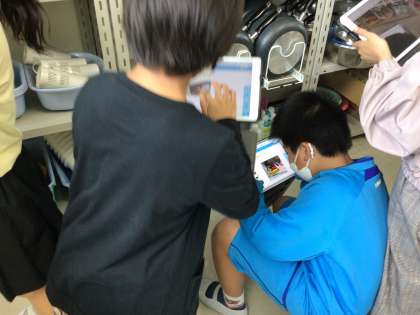 こちらのクラスも、家庭科室に置いてある器具を探しました。