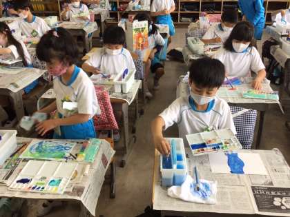 いろんな絵の具を混ぜたり、水の量を変えたり・・・