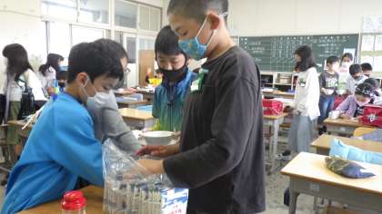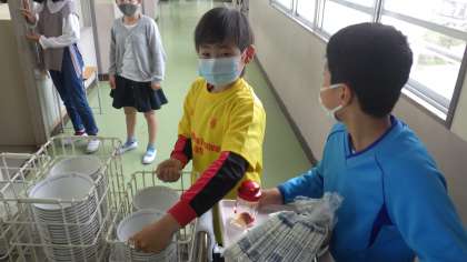 給食では、みんなで声を掛け合い、スムーズに片付けをすることができました。協力できるということは、すばらしいことですね。