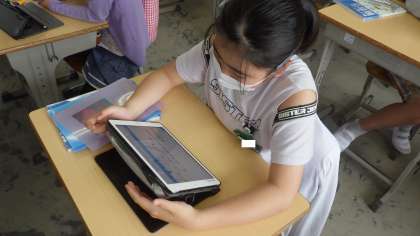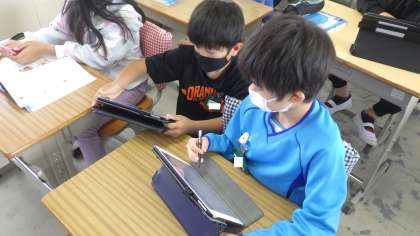算数では、体積の学習を行っています。自ら考え、説明することを重視して、学習に取り組んでいます。