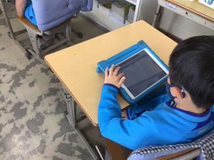 健康カードの記入の練習をしています。これからは、ここに記録します。