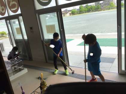 給食をはやく食べ終わった子が玄関の掃除をしてくれました。お客様が見える日なので気合が入っています!