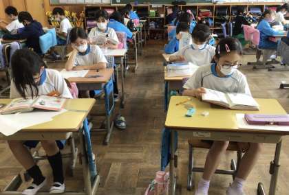 今日は、「角とその大きさ」の単元テストを行いました。早く終わった子は静かに読書をしていました。