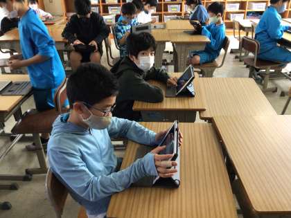 6年生の総合では「防災✖️プログラミング」をテーマに学習を進めていきます。今日は有志の児童が休み時間に集まって、プログラミングスキルを磨きました。