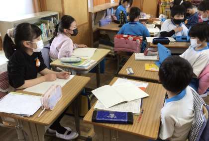 各市町村の人口や面積、特産品について調べたことを話し合いました。