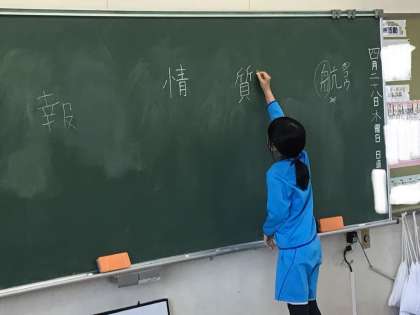 子どもたち自身が先生となり、漢字の学習を行っています。部首や読み方、注意点などをみんなに伝えています。