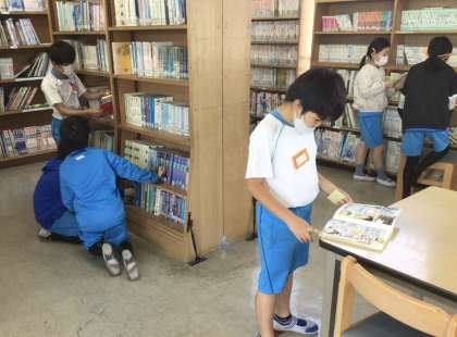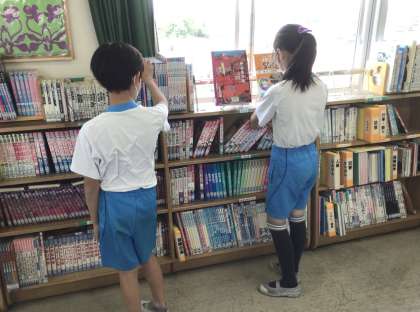 図書館へ行こうという内容なので、図書館で授業を行いました。最後は、本を借りる時間にしました。