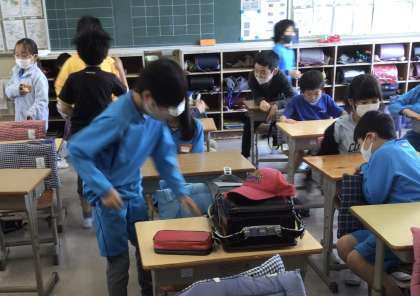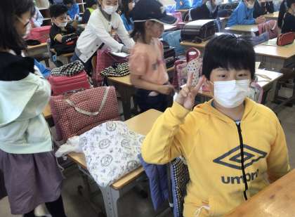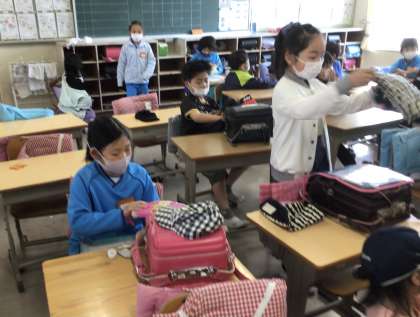 今日は、清掃時間後、すぐに下校なので、清掃前に帰る準備をしていました。