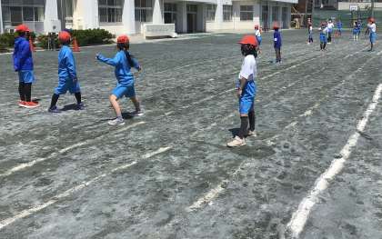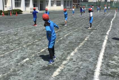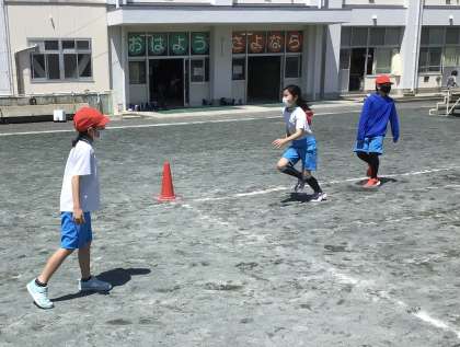 この日の体育は、リレーのバトンパスの練習をしていました。