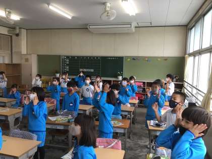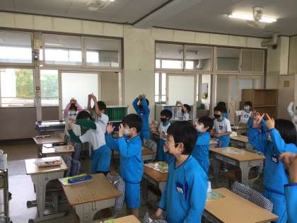 音楽に合わせて、踊っています。みんなで合わせると、楽しいね。