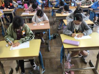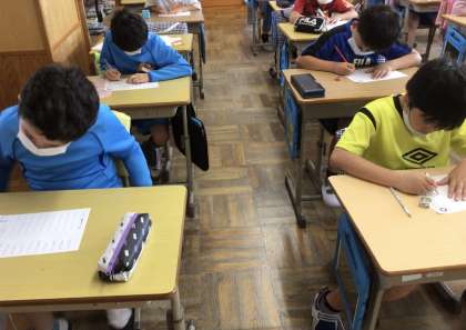 今日は、新出漢字のテストを行いました。なので、朝登校後に漢字の練習をしている子もいました。