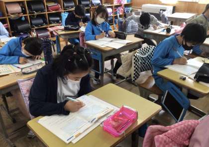 今日は、折れ線グラフの変わり方の様子を調べました。変化が大きいほどグラフの傾きが急になっていることに気づきました。