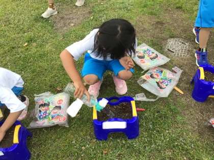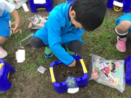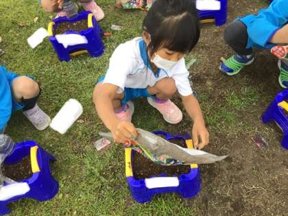 今日は、アサガオの種をまきました。