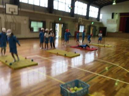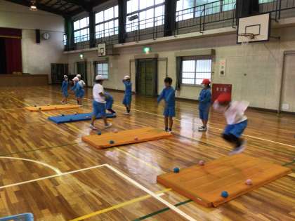 体力テストに向け、立ち幅跳びにチャレンジ!