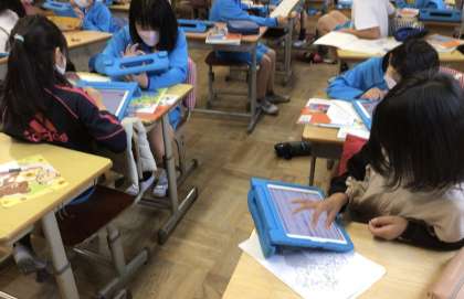 調べたことをグループで話し合いました。