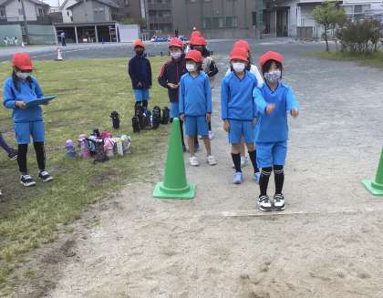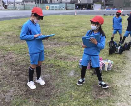 同じ班の子を学習用タブレットで撮影して、振り返りをしていました。