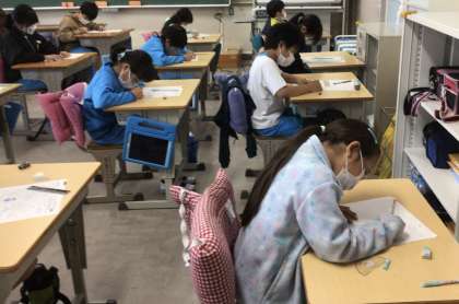 今日は、単元テストを行なっていました。