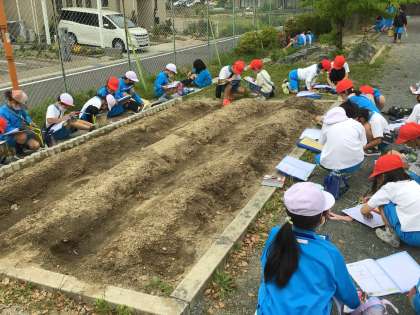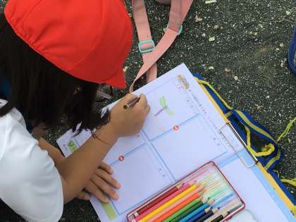 ひまわりの観察をしました。 葉っぱは何枚?茎は何cm?