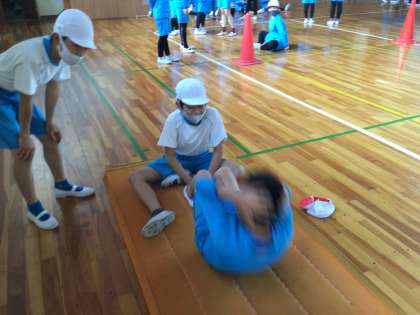 体力テストの練習に取り組んでいます。昨年度の自分の記録を元に、目標設定をして挑んでいます。