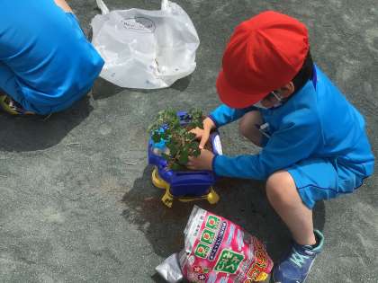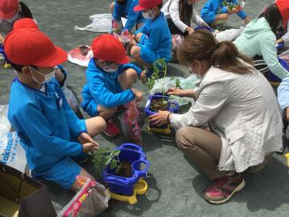 育てたい野菜を、植えました。トマトやきゅうり、なすやとうもろこしもありました。上手に育つといいですね。