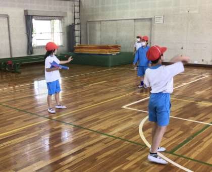 昨日は、体育館で体力テストのソフトボール投げでより遠くに投げるための練習をしました。