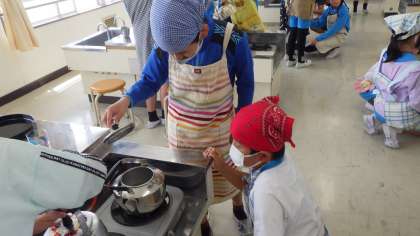友達とエプロン姿を見合って「かわいい〜!」と言い合う様子になごみました。