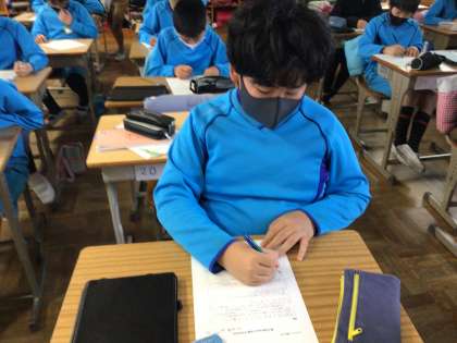 情報モラル「SNSで情報を発信する際のリスクと責任について考えよう」の学習の様子です。情報モラル検定に挑戦して、自分の情報モラルレベルを確かめました。この機会にぜひ、ご家庭でも、SNSの利用の仕方について、話し合ってみてください。