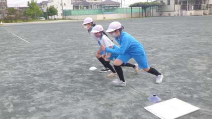 走の授業を行っています。50M走を測定しました。