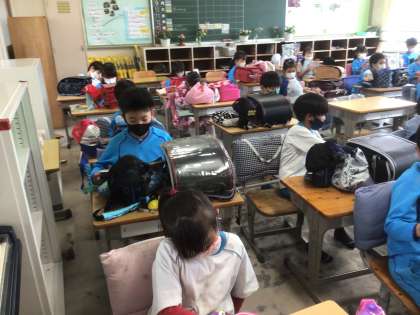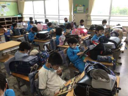 訓練の緊急放送が入り、静かに帰りの支度を整えました。お迎えを待つだけになっています。緊急時に、迅速な動きができるといいですね。